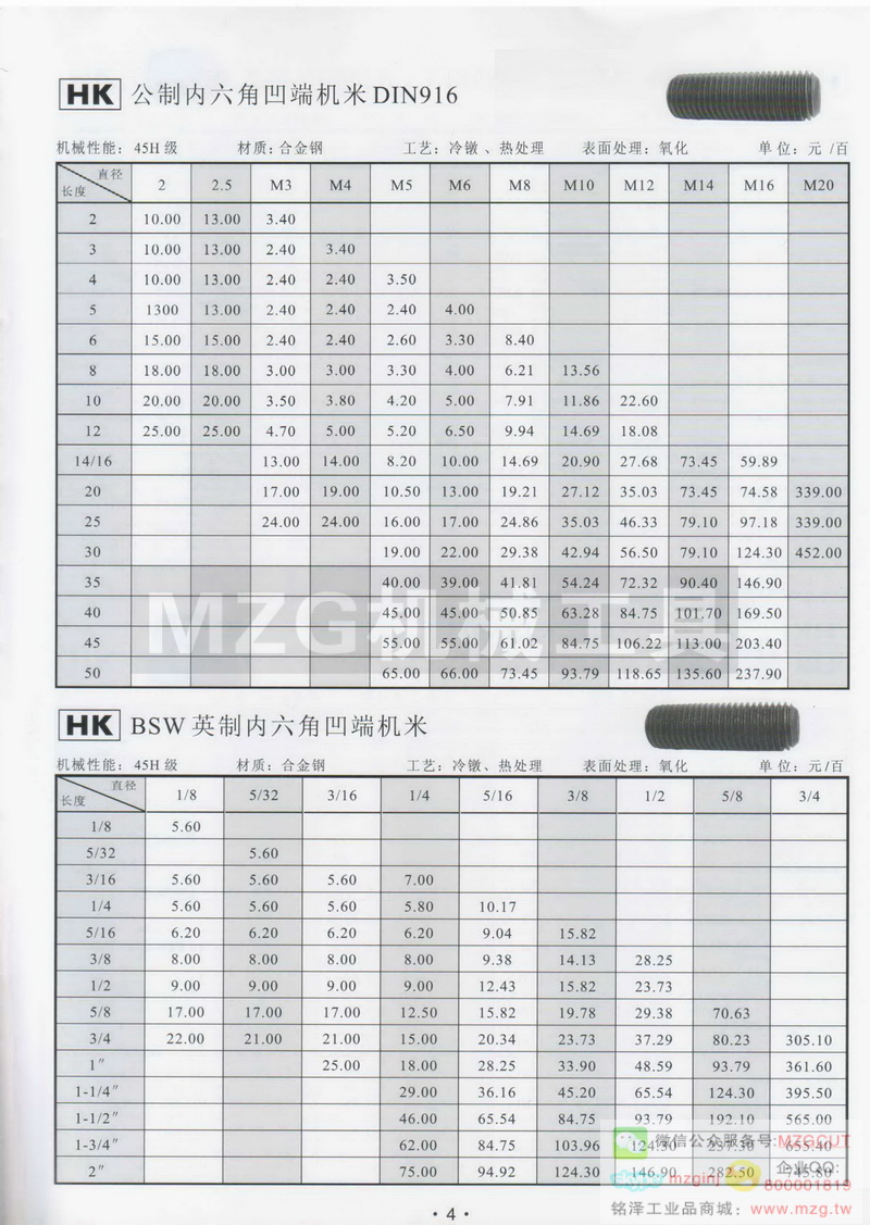 公制,英制內六角凹端機米產品技術參數配件組成信息