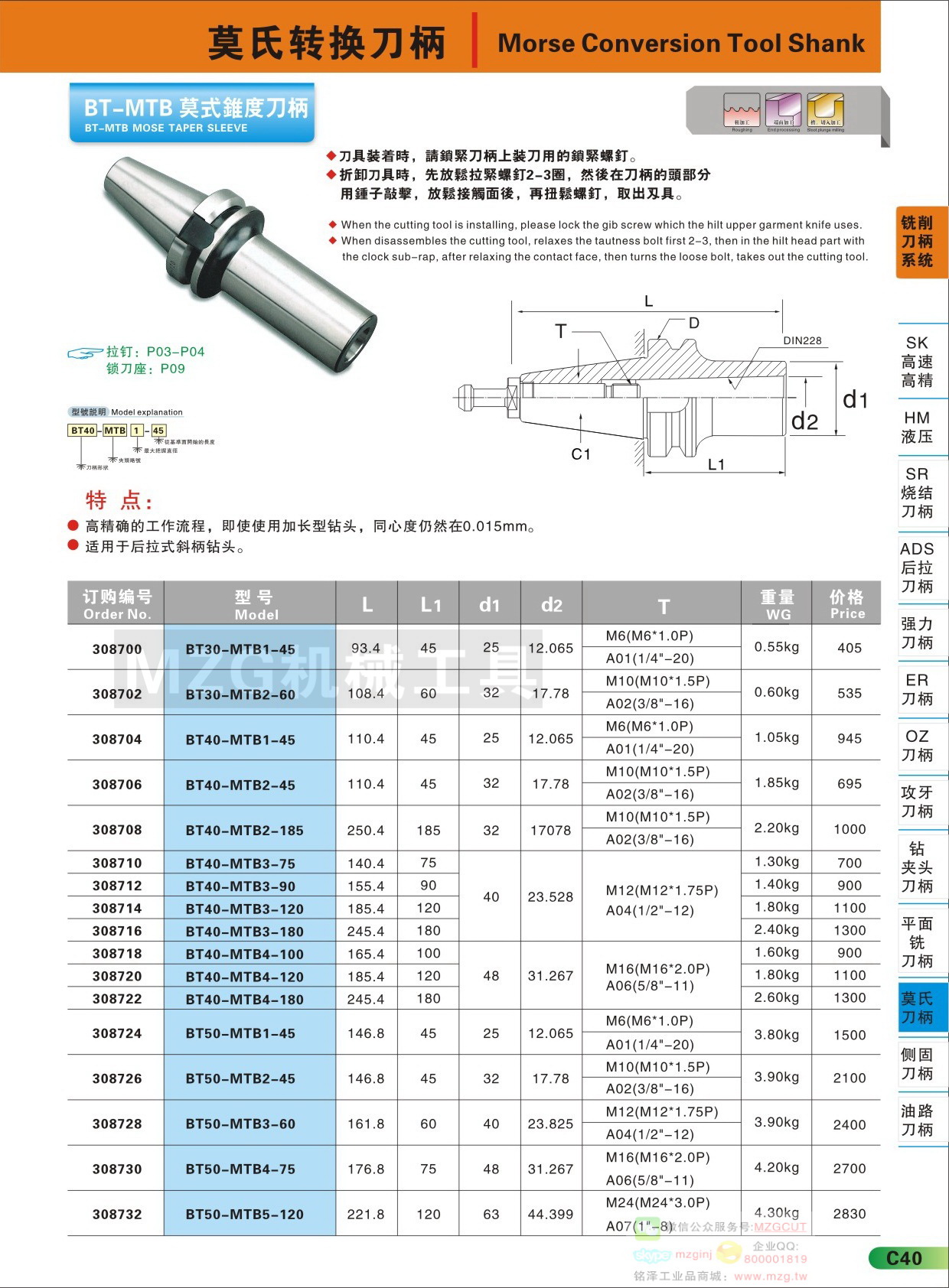 MZG品牌數(shù)控刀柄產(chǎn)品技術(shù)參數(shù)配件組成信息