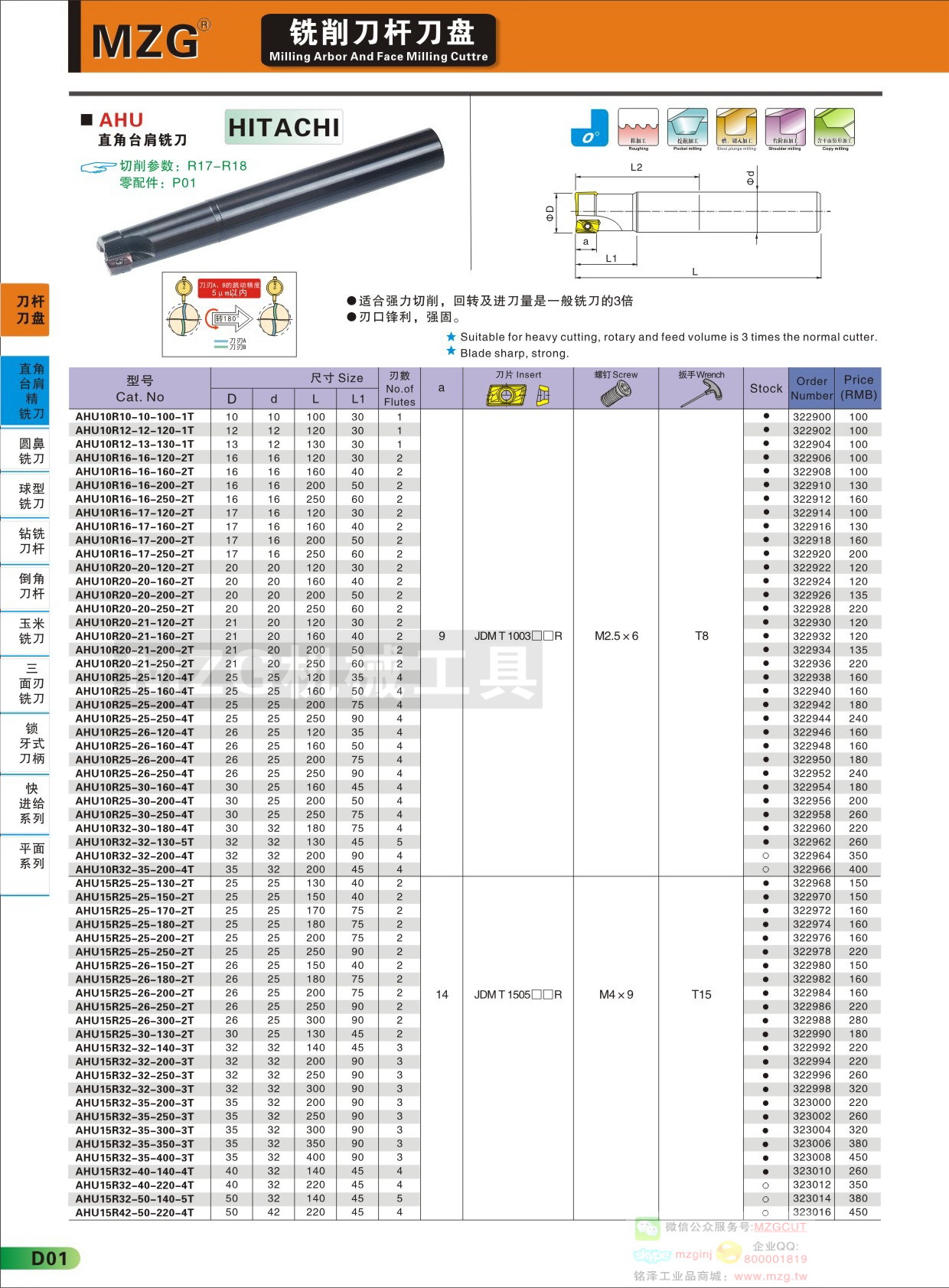 MZG數(shù)控刀具AHU直角臺(tái)肩立銑刀產(chǎn)品技術(shù)參數(shù)配件組成信息